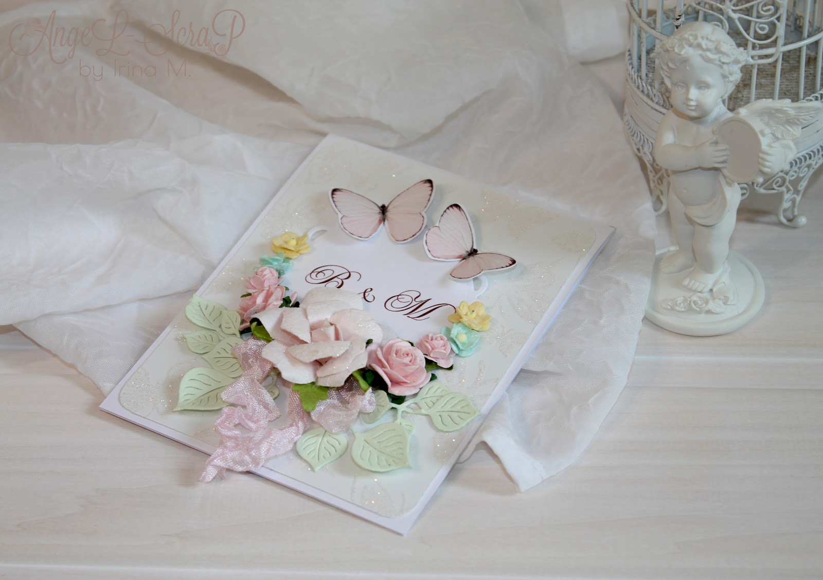 Сегодня хочу показать свадебный комплектик. Открытка в коробочке с окошком.